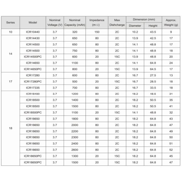 Lithium Ion ICR18650 D1 3000mAh rechargeable batteries Specification: